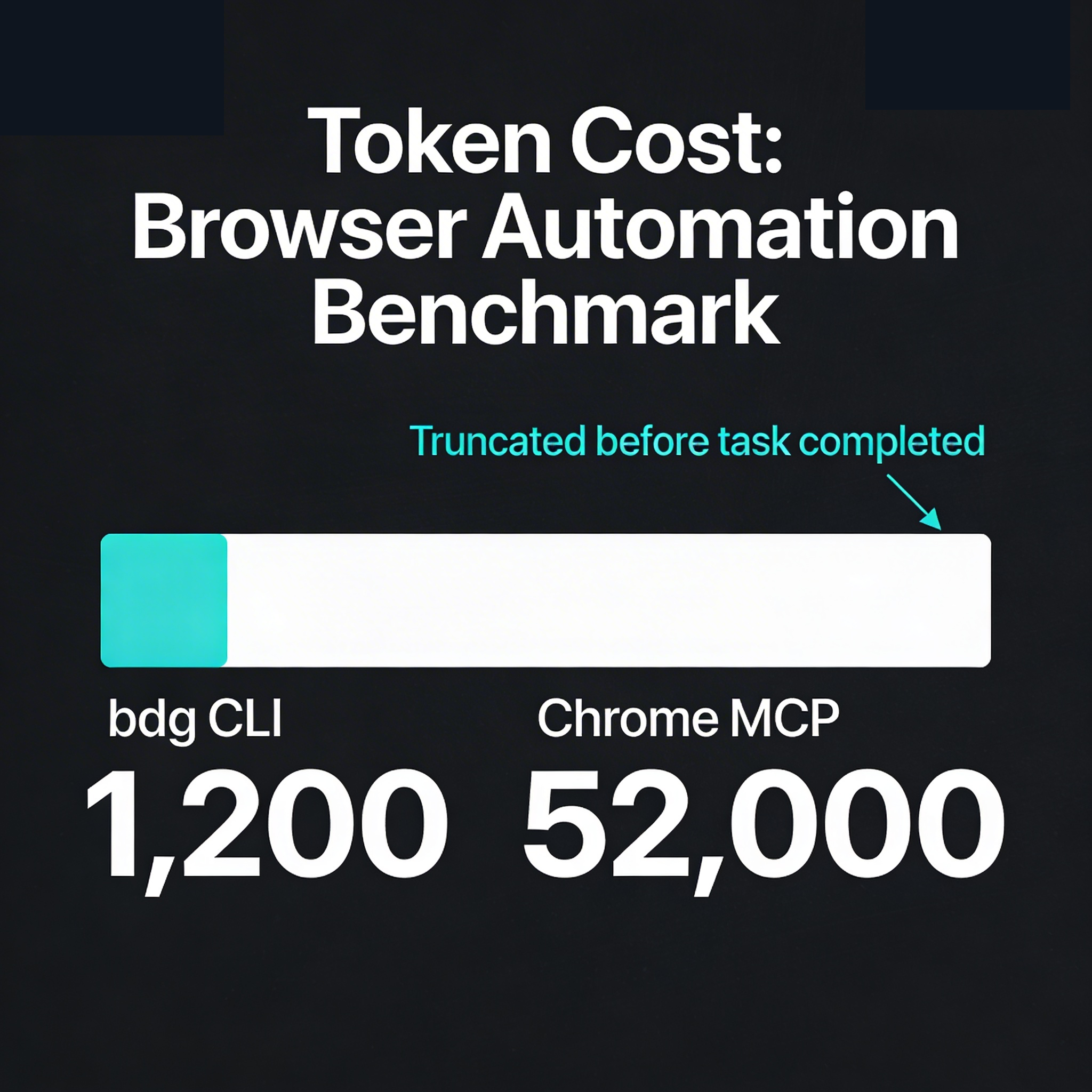 There's a browser automation benchmark comparing a CLI tool called bdg against Chrome MCP across three real-world tasks.