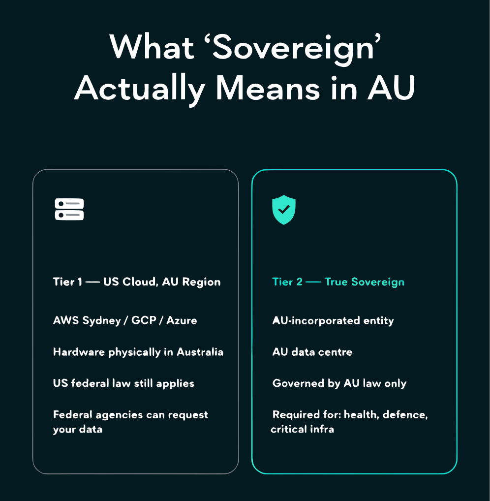 The first is just having the hardware physically in Australia, which you can achieve through AWS, GCP, or Azure through their over east or central Australian regions.