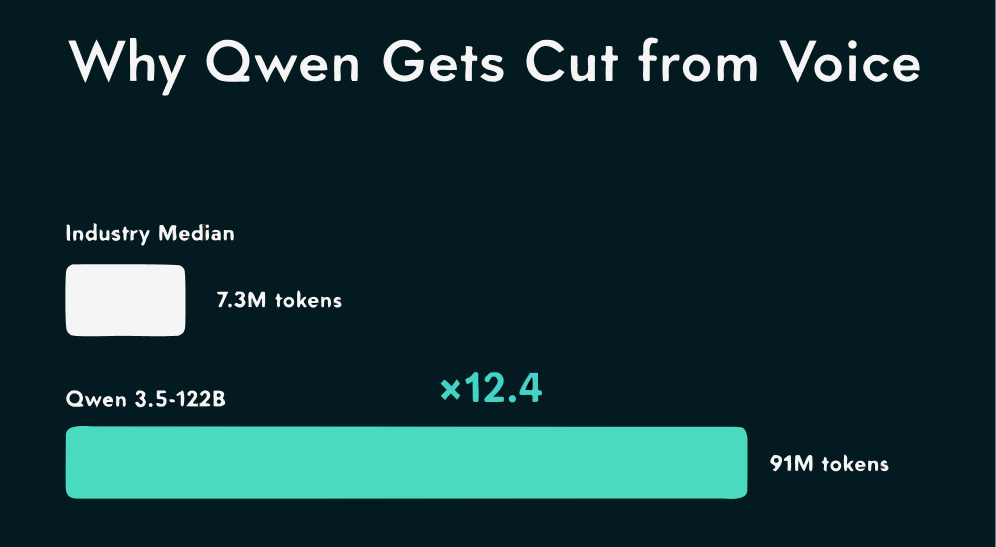 When I looked at the benchmark data, the industry median for similar tasks generates around 7.3 million tokens, while Qwen was generating 91 million.[^3]