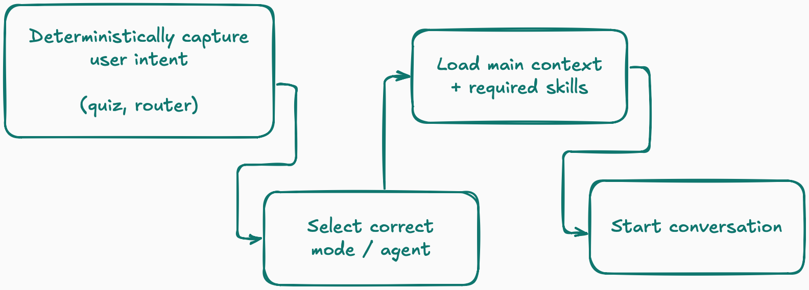 In summary: if the user knows what they want, route deterministically and load the right context before the model speaks. If the user is a power user, let them self-select skills and personas naturally, and avoid forcing them into one over-specialized agent. If you can't do either, automate triggering, but don't ship until you can prove it fires when you expect it to, 90% of the time.